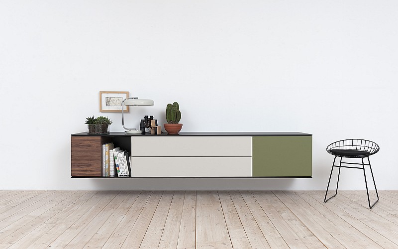 Door lage kasten te plaatsen in de woonkamen houd je de kamer luchtig en open. Een ruimtelijk effect!